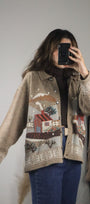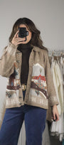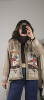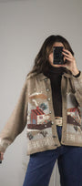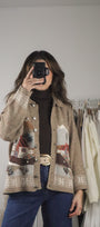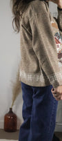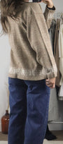 Size: Labeled M, suits M / Brand: Knitwear Sussan / Condition: 9/10 / Material: 68% acrylic, 30% wool, 2% angora / Type: Vintage / Colours: Tan, cream, orange, blue, grey, green, brown