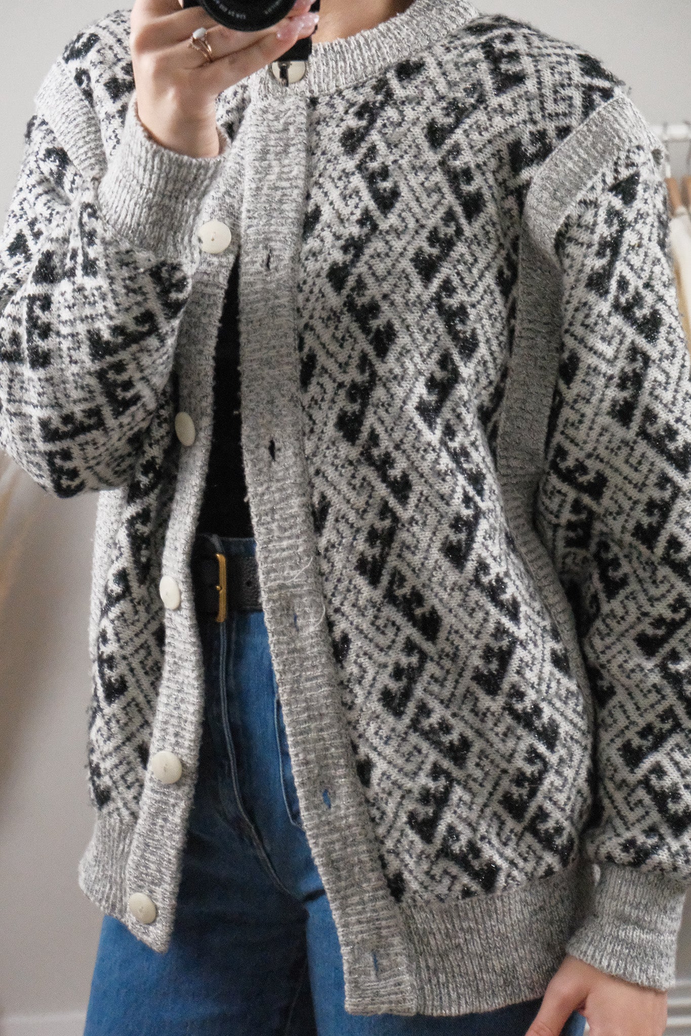 Vintage x Wool Blend Patterned Cardigan (M/L)
