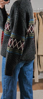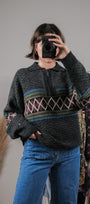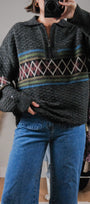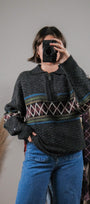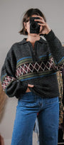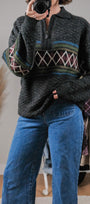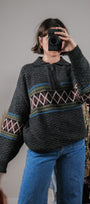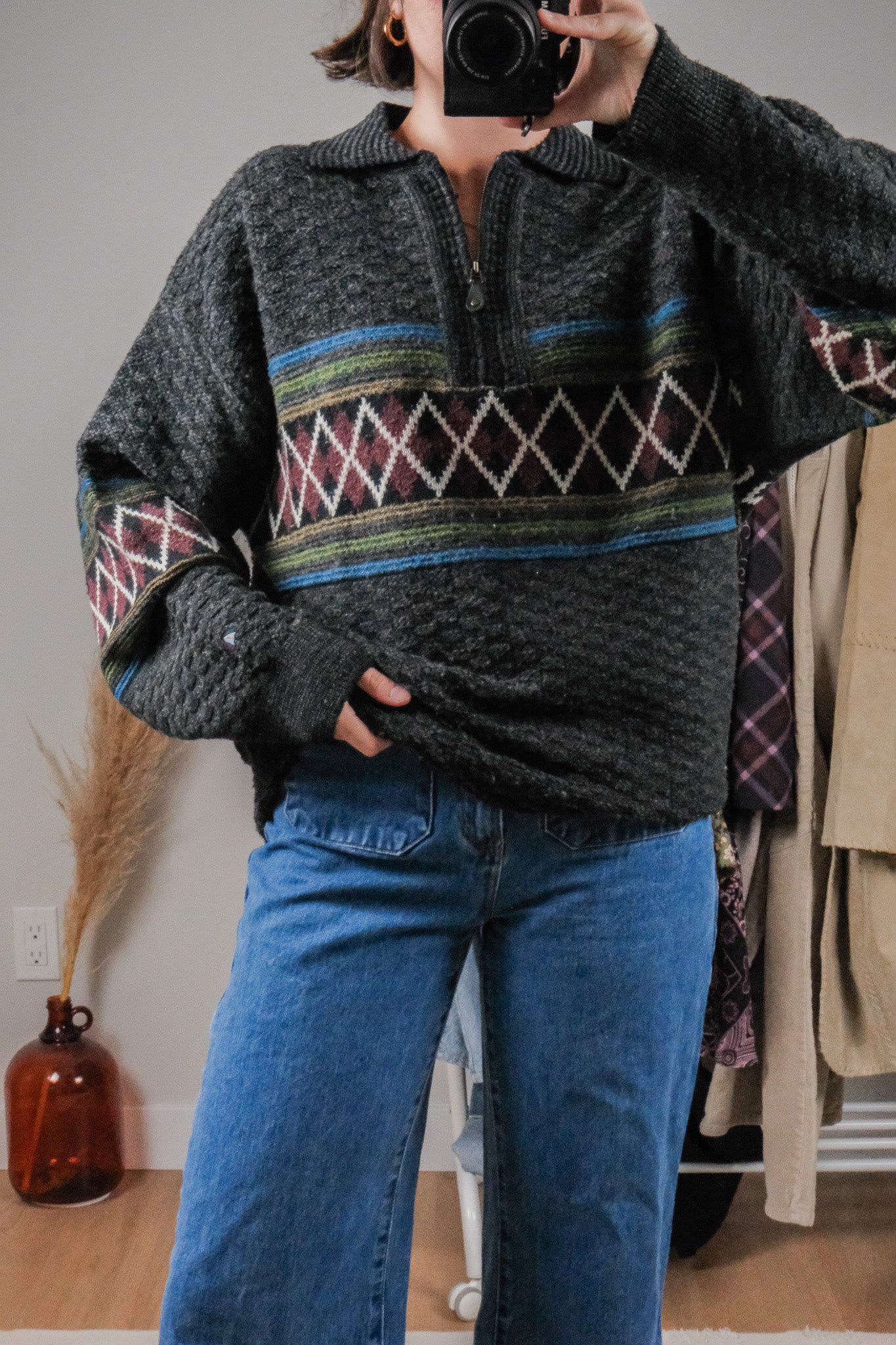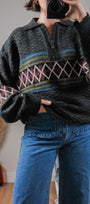 Made in Korea x Vintage x Wool Blend Quater Zip Patterned Knit (L/XL)
