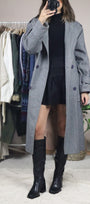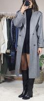 Size: Not labeled, suits M / Brand: Sears / Condition: 9/10 / Material: Not listed, has wool (feels like 100% wool), polyester lining / Type: Vintage / Colours: Grey & Black