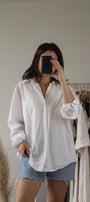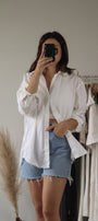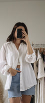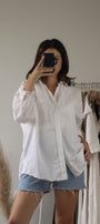 Size: Labeled L, suits M/L / Brand: Babaton / Condition: 9/10 (small mark on pocket) / Material: 100% cotton / Type: White / Colours: White