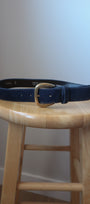 Size: Not labeled, suits S / Brand: Not listed / Condition: 9/10 / Material: 100% leather / Type: Vintage / Colours: Navy & Gold