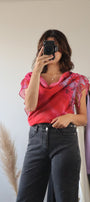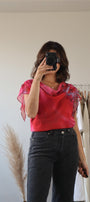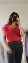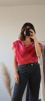 Size: Labeled XL, suits L/XL / Brand: Hiroko / Condition: 9/10 (slight wear) / Material: 100% polyester / Type: Vintage / Colours: Pink, Orange, & Purple
