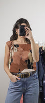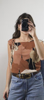 Size: Labeled 14, suits XL / Brand: Cleo / Condition: 9/10 / Material: 100% polyester / Type: Vintage / Colours: Brown, tan, beige, black