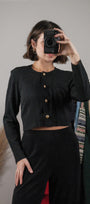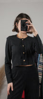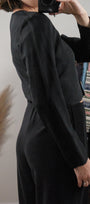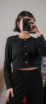 Size: Labeled 5, suits XS/S / Brand: M Collection / Condition: 9/10 / Material: 70% rayon, 30% polyester / Type: Vintage / Colours: Black (gold buttons)