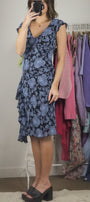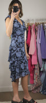 Size: Labeled 12, suits 6/8 / Brand: Tristan & Iseut / Condition: 9/10 / Material: 100% rayon (lined) / Type: Vintage / Colours: Blue & Black
