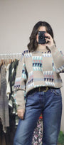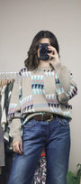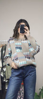 Size: Labeled L, suits M/L / Brand: camela / Condition: 9/10 / Material: 50% lambswool, 50% acrylic / Type: Vintage / Colours: Tan, white, pink, blue, black