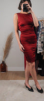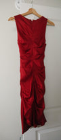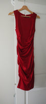 Size: Labeled XXS, suits XXS / Brand: Le Château / Condition: 9/10 / Material: 60% acetate, 38% rayon, 2% spandex / Type: Vintage / Colours: Red