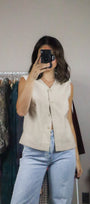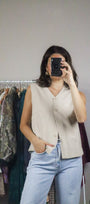 Size: Labeled 8, suits 6/8 / Brand: Haggar / Condition: 10/10 / Material: 50% polyester, 50% rayon / Type: Vintage / Colours: Tan