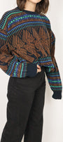 Size: Labeled XL, suits M/L / Brand: Fellini / Material: 100% acrylic / Condition: 8/10 / Type: Vintage / Colour: Brown, black, green, & blue