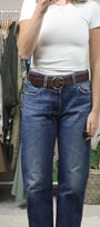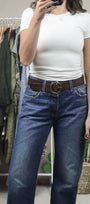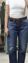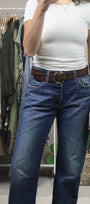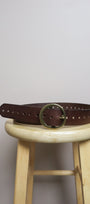 Size: Labeled XS/S, suits XS/S / Brand: Banana Republic / Condition: 9/10 / Material: 100% Italian leather / Type: Vintage / Colours: Brown & Gold