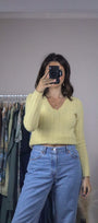 Size: Labeled M, suits S / Brand: Peck & Peck / Condition: 9/10 / Material: 100% cashmere / Type: Vintage / Colours: Butter Yellow