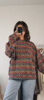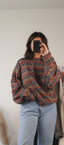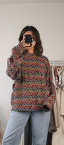Size: Labeled M, suits M/L / Brand: JHANE BARNES / Condition: 9/10 / Material: 60% cotton, 17% polyester, 9% rayon, 4% linen, 2% polyurethane / Type: Vintage / Colours: Black, yellow, blue, purple