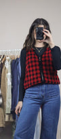 Size: Labeled S, suits S / Brand: Cleo Petits / Condition: 9/10 / Material: 76% rayon, 24% acrylic / Type: Vintage / Colours: Red & Black