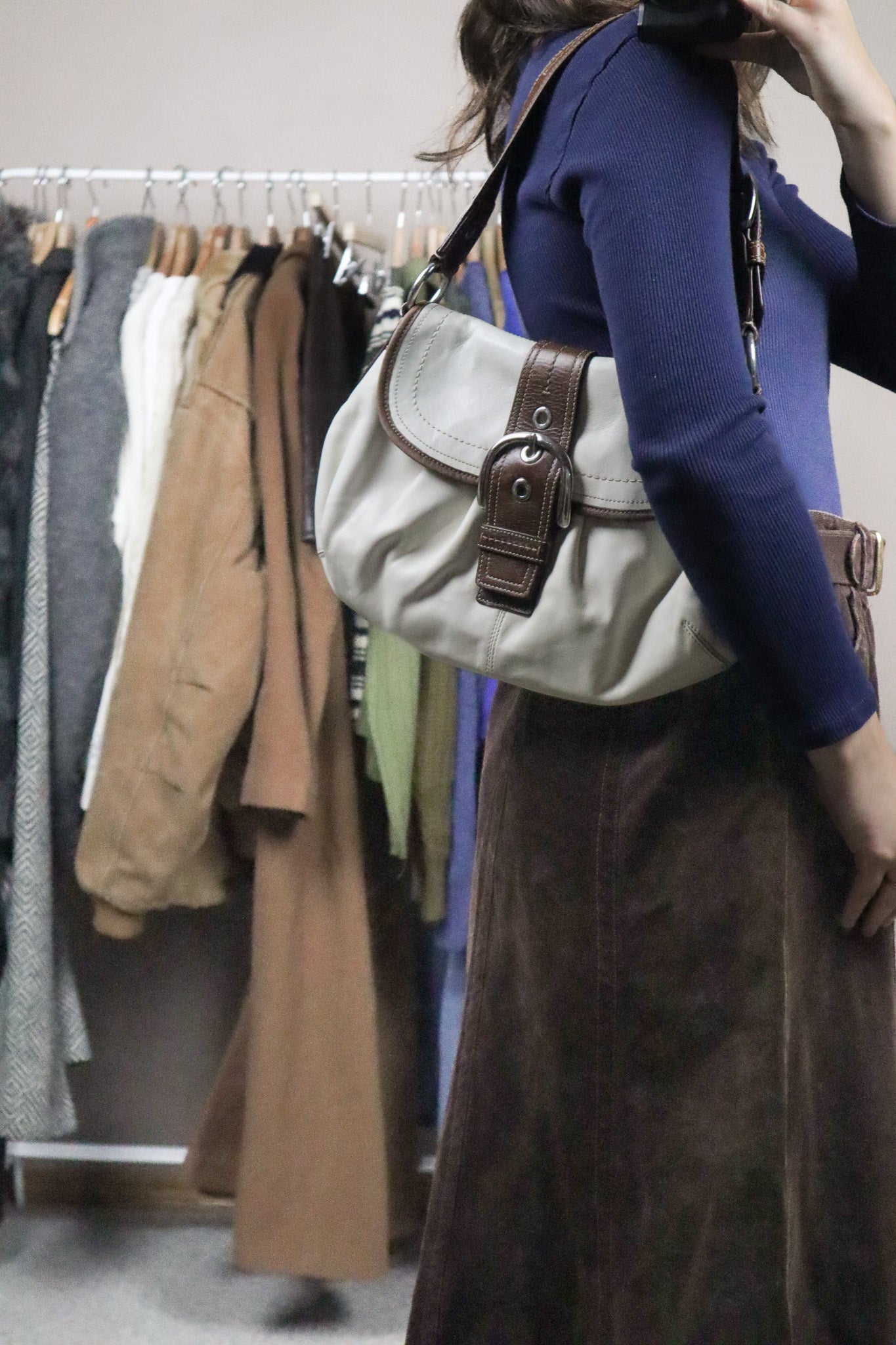 Brand: Coach / Condition: 8/10 (please note, has minor wear and mark on front, see last 4 photos) / Material: Leather / Type: Vintage / Colours: Cream & Brown