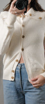 Size: Labeled S, suits S / Brand: Eddie Bauer / Condition: 9/10 / Material: 60% cotton, 20% wool, 10% nylon, 10% angora / Type: Vintage / Colours: Cream