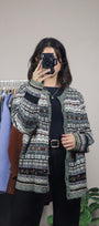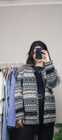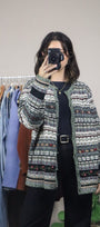 Size: Labeled XL, suits L/XL / Brand: Northern Reflections / Condition: 9/10 (has slight vintage wear, slight piling) / Material: 60% cotton, 40% acrylic / Type: Vintage / Colours: Grey, cream, maroon, yellow, navy, green