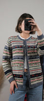 Size: Labeled S, suits S / Brand: Northern Reflections / Condition: 9/10 / Material: 60% acrylic, 40% cotton/ Type: Vintage / Colours: cream, red, green, blue, taupe