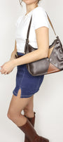 Brand: No brand / Condition: 9/10 / Material: 100% faux leather / Type: Vintage / Colours: Brown & tan with silver hardware