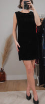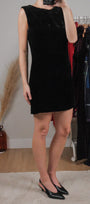 Size: Labeled 6, suits 6 / Brand: Gap (90s) / Condition: 9/10 (has minor wear on velvet) / Material: 82% rayon, 18% silk / Type: Vintage / Colours: Black