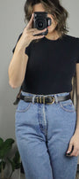 Size: Labeled L, suits M / Brand: Town & Country / Condition: 9/10 / Material: 100% leather / Type: Vintage / Colours: Black & gold