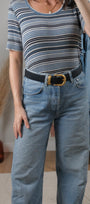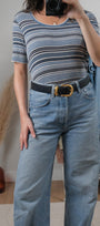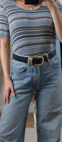 Size: Labeled M, suits XS / Brand: devonshire cream / Condition: 9/10 / Material: Leather / Type: Vintage / Colours: Navy, gold
