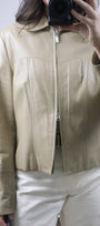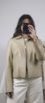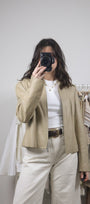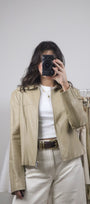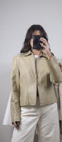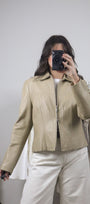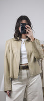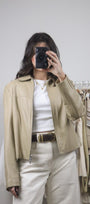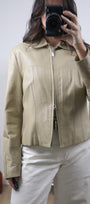 Size: Labeled M, suits S / Brand: Danier / Condition: 9/10 (slight discolouration on collar, very subtle, see last photo) / Material: 100% leather (lined) / Type: Vintage / Colours: Biege