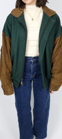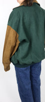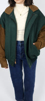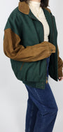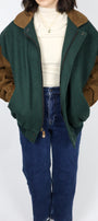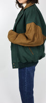 Size: Labeled M, suits M/L / Brand: Canadian Outdoors / Condition: 9.5/10 / Material: Body - 75% wool, 20% nylon, 5% other. Collar, trim, sleeves - 100% leather / Type: Vintage / Colours: Tan & Green