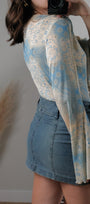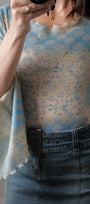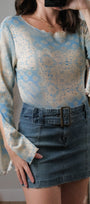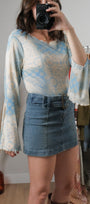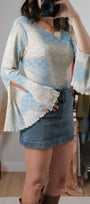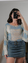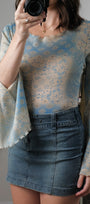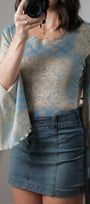 Vintage x Mesh Patterned Bell-Sleeve Top (L)