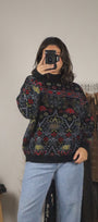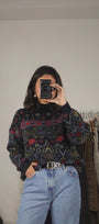 Size: Labeled L, suits M/L / Brand: Grace / Condition: 9/10 / Material: 100% acrylic / Type: Vintage / Colours: Black, red, yellow, & blue