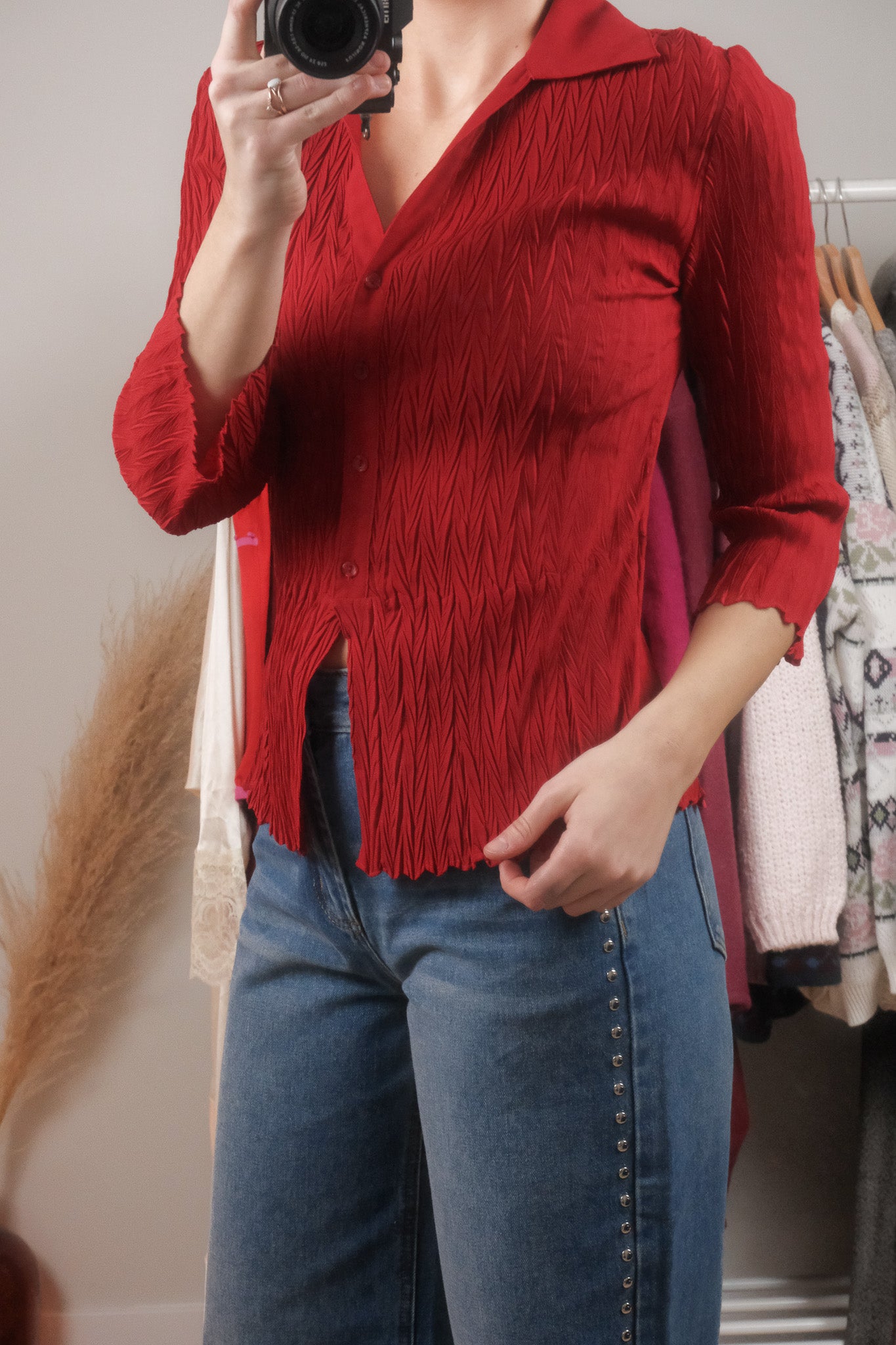 Vintage x Sheer Crinkle Collared Blouse (S)