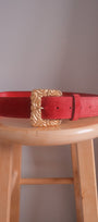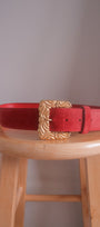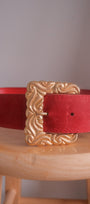 Size: Labeled L, suits M / Brand: Charles Garré Condition: 9/10 / Material: Leather / Type: Vintage / Colours: Red, gold