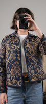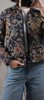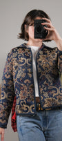 Size: Not labeled, suits XS / Brand: Not listed / Condition: 9/10 / Material: Not listed / Type: Vintage / Colours: Navy, maroon, gold