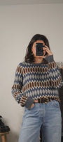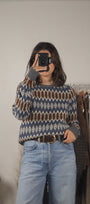 Size: Not labeled, suits S/M / Brand: Royal Class Selection / Condition: 9/10 / Material: Not listed (feels like wool blend)/ Type: Vintage / Colours: Grey, blue, cream, brown