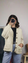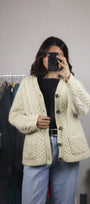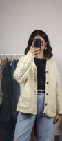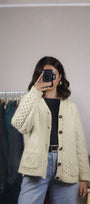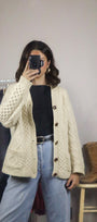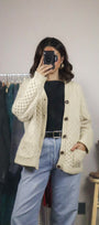 Size: Not labeled, suits M / Brand: No Brand / Condition: 9/10 (slightly different bottons & sight wear on one cuff) / Material: 100% wool / Type: Vintage / Colours: Cream