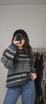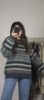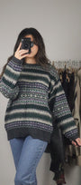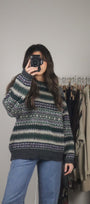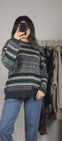 Size: Labeled M, suits S/M / Brand: Etchings / Condition: 9/10 / Material: 100% wool / Type: Vintage / Colours: Green, purple, grey, black