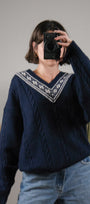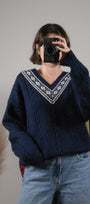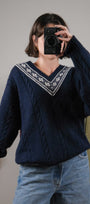 Vintage x Wool V-Neck Patterned/Textured Knit (L/XL)