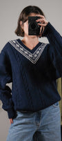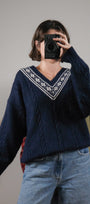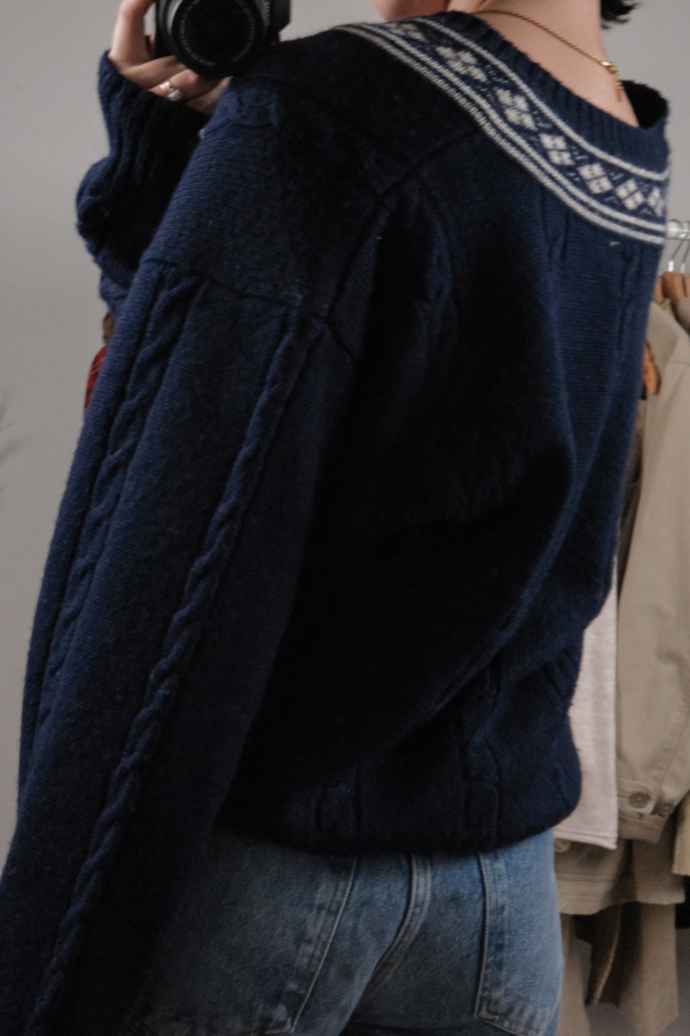 Size: Labeled XL, suits L/XL / Brand: Giordano / Condition: 9/10 / Material: 100% wool / Type: Vintage / Colours: Blue, cream