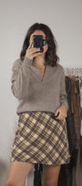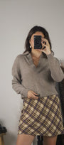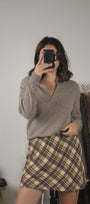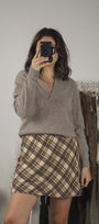 Size: Labeled XS, suits XS/S / Brand: Aljean of Canada / Condition: 9/10 (has a small hole in the back & slight piling. Price reflects condition) / Material: 95% cashmere, 5% elastane / Type: Vintage / Colours: Red & Gray