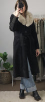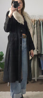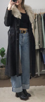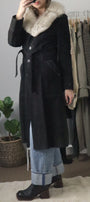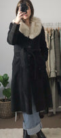 Size: Labeled 12, suits XS/S / Brand: Cosa Nova / Condition: 9/10 / Material: Shell - 100% suede, Collar - 100% fur, lining - quilted/ Type: Vintage 70s / Colours: Black & cream with dark tips