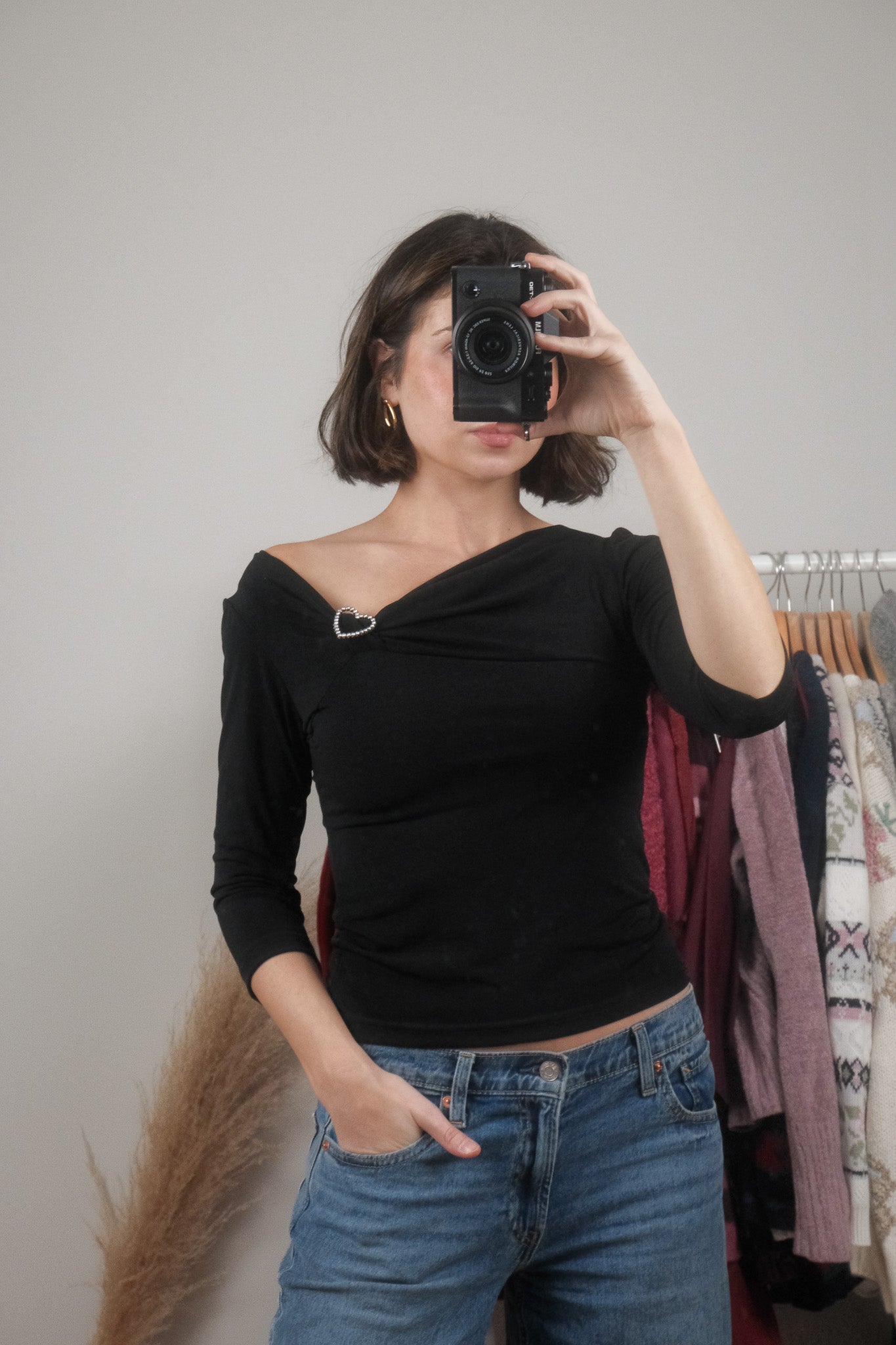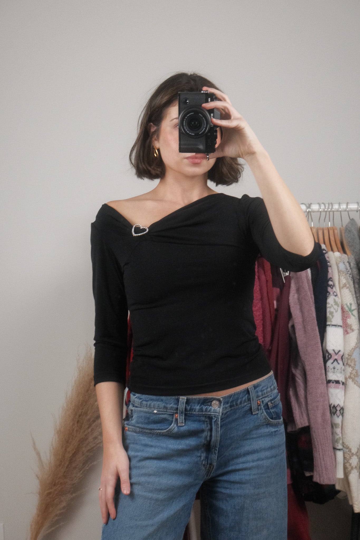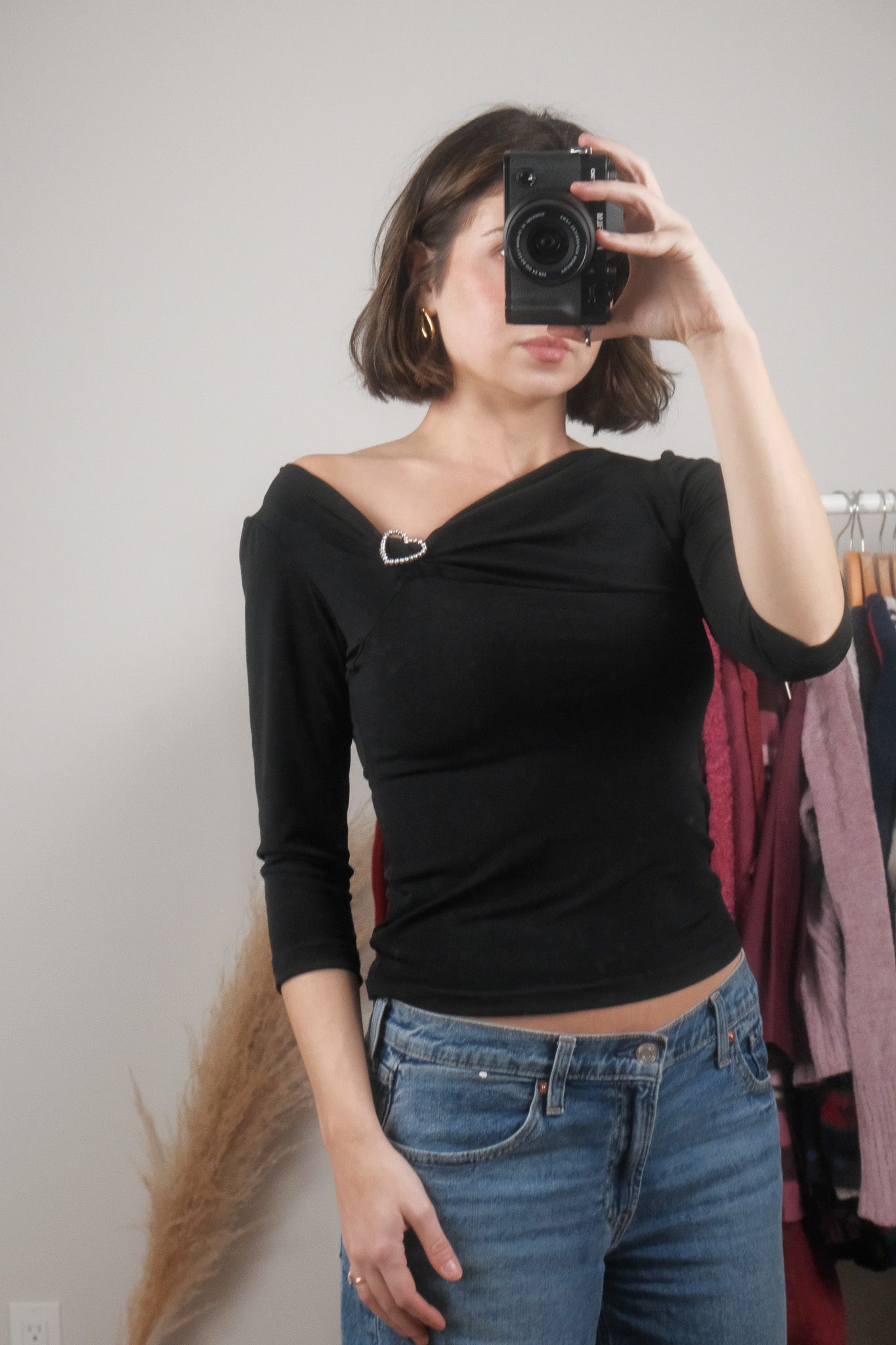 Made in Canada x Vintage x 3/4 Sleeve Heart Top (S)