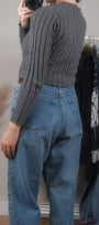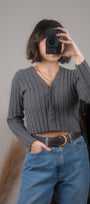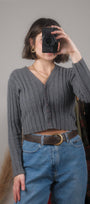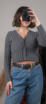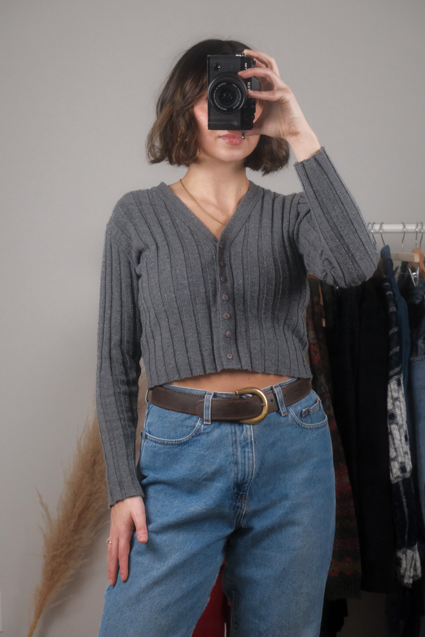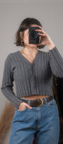 Made in Canada x Vintage x Cropped Ribbed Cardigan (XS/S)