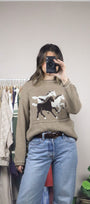 Has the stunning detail of the outline of the horses on back of sweater
