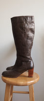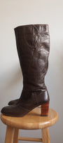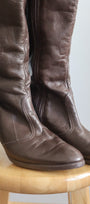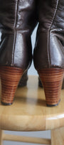 Size: Labeled 7, suits 7 / Brand: Not listed / Condition: 9/10 (wear on heels, see photos) / Material: Leather / Type: Vintage / Colours: Brown