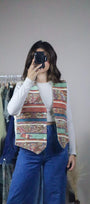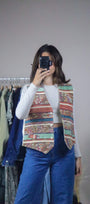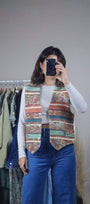 Size: Labeled L, suits L / Brand: Cleo Petiets / Condition: 9/10 / Material: 97% polyester, 3% spandex / Type: Vintage / Colours: Cream, green, orange, tan, blue