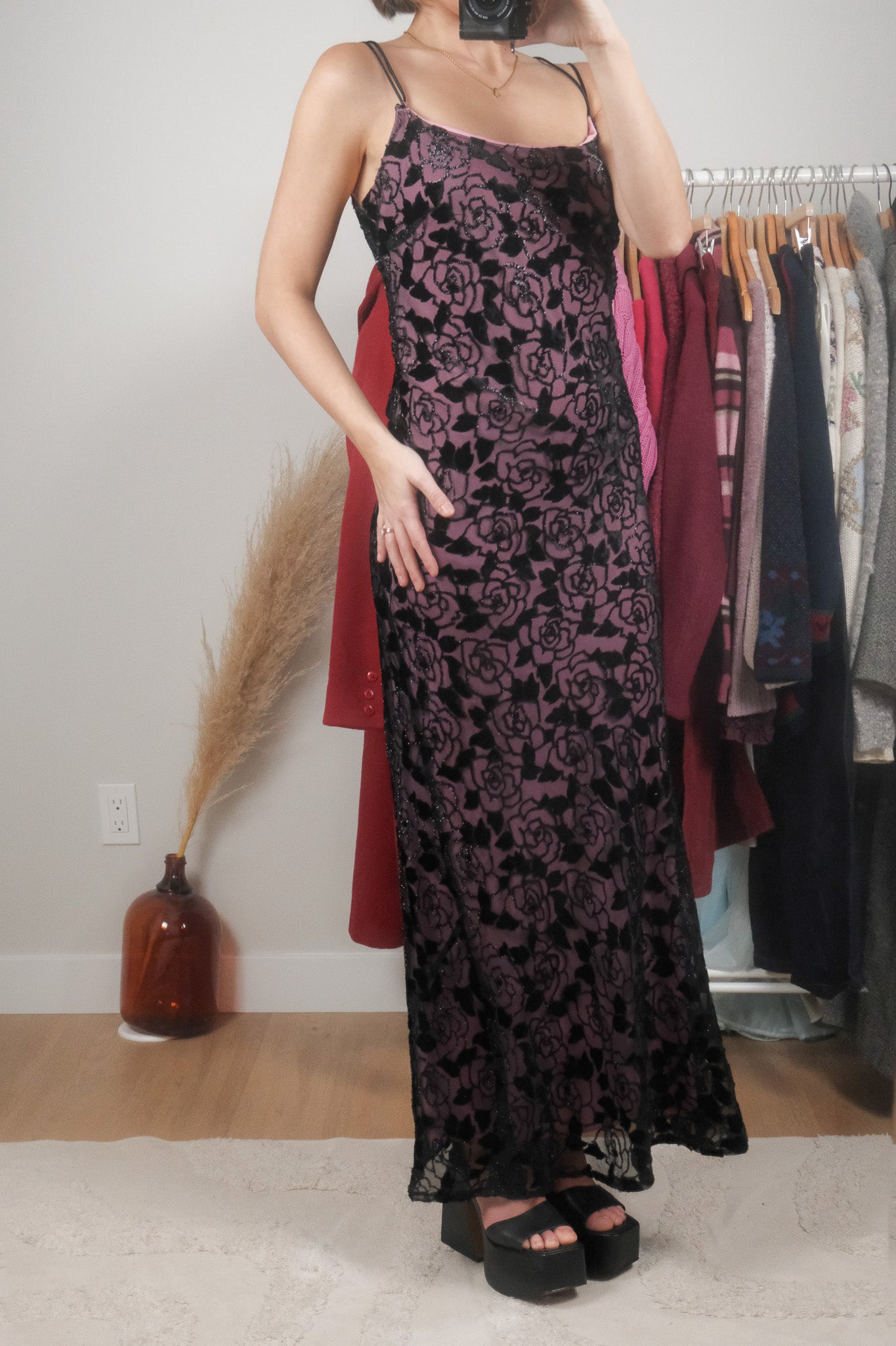 Made in Canada x Vintage x Rose Shimmer Maxi Dress (8/10)