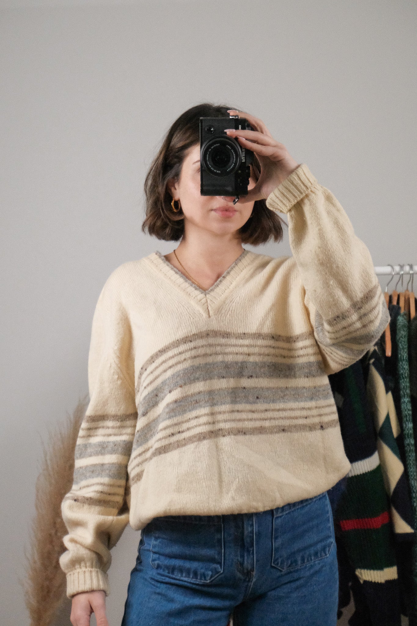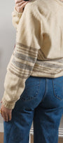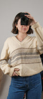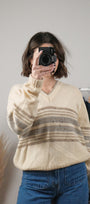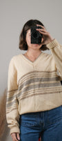 Size: Labeled 44, suits M/L / Brand: Sears / Condition: 9/10 / Material: 100% shetland wool / Type: Vintage / Colours: cream, grey, taupe
