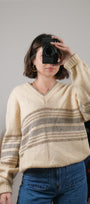 Made in Canada x Vintage x Shetland Wool Striped V-Neck (M/L)