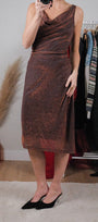 Made in Canada x Vintage x Shimmer Cowl Neck Midi Dress (L)