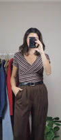 Size: Labeled M, suits M / Brand: Baranda Petites / Condition: 9/10 / Material: 92% polyester, 8% spandex / Type: Vintage / Colours: Brown & Pink